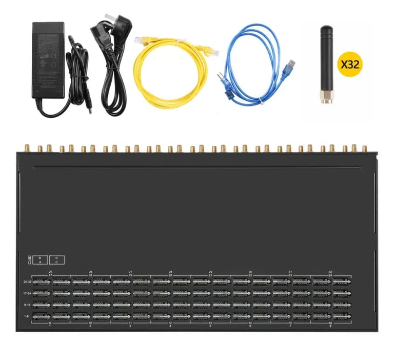 32 Puertos GSM: Conexiones simultáneas para llamadas y mensajes, sin interrupciones.