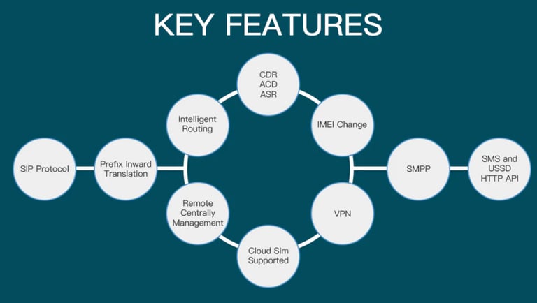 Cada canal/puerto tiene múltiples tarjetas SIM que funcionan por turnos automáticamente según las condiciones establecidas.