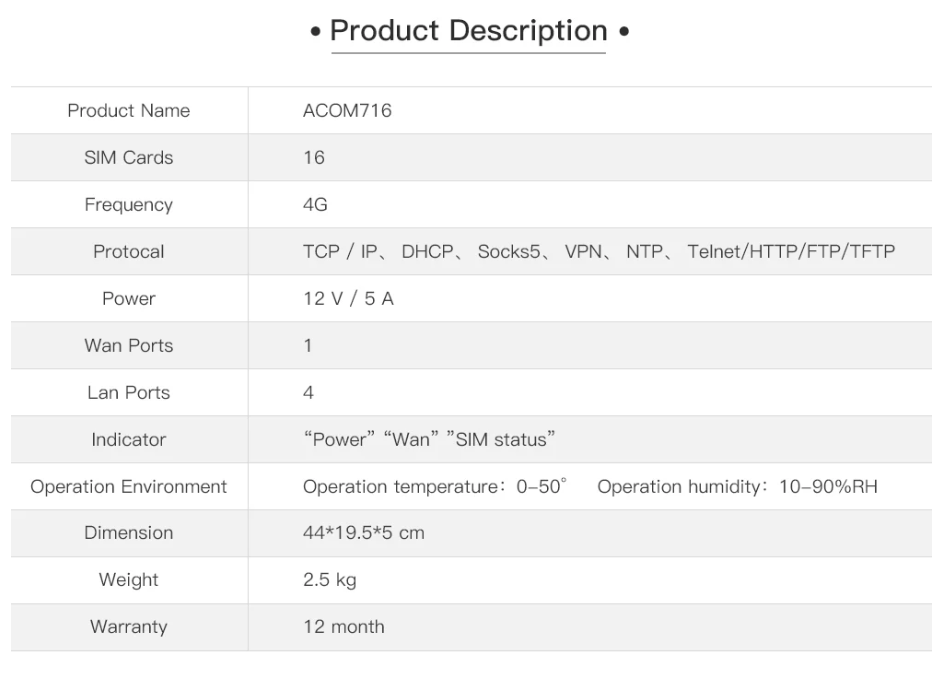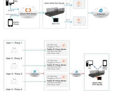 ACOM716 proporciona una solución proxy multi-IP 4G eficiente accediendo a Internet a través de diferentes tarjetas SIM.