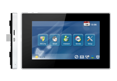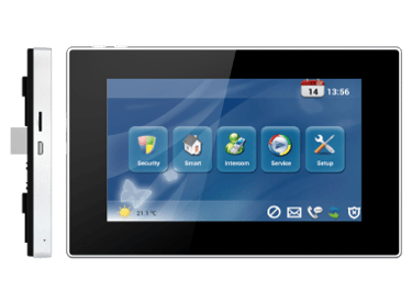 A Linux-based indoor panel featuring an 800×480 touch display.